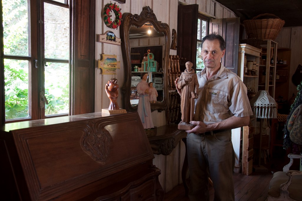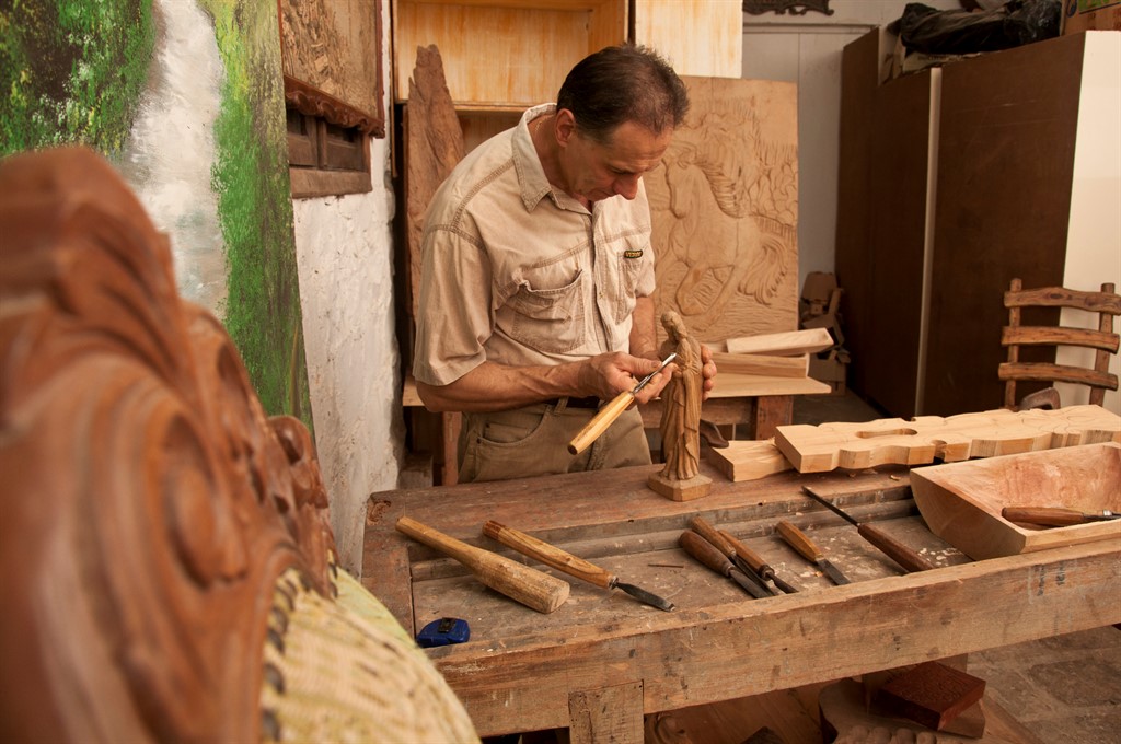 O artista faz trabalhos como estátuas, quadros, entalhes, réplicas de móveis coloniais e antigos, decoração, utensílios para cozinha.