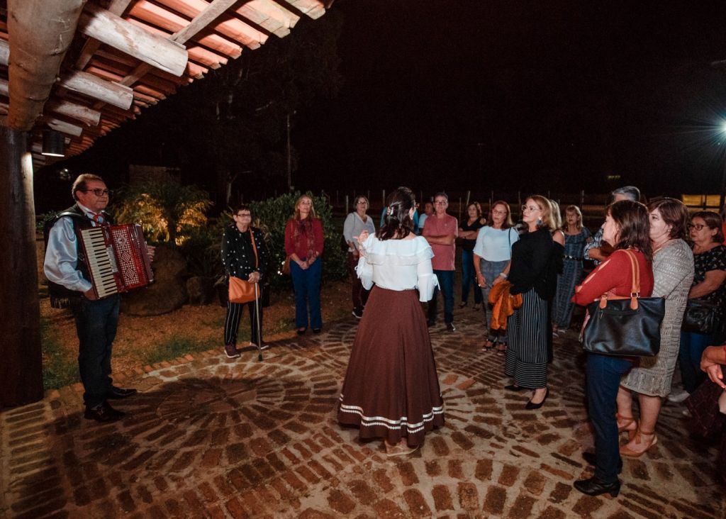 E entre prosa e verso, e ao som da gaita os visitantes são convidados a bailar, num arrasta pé que mistura ritmos gaúchos e diverte através de danças de integração e brincadeiras entre os presentes.