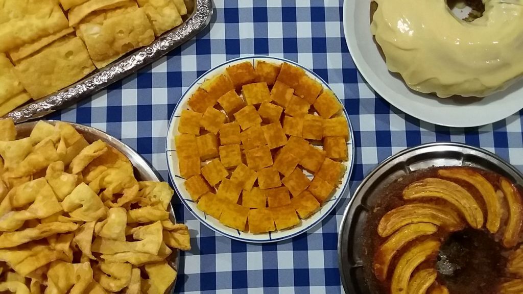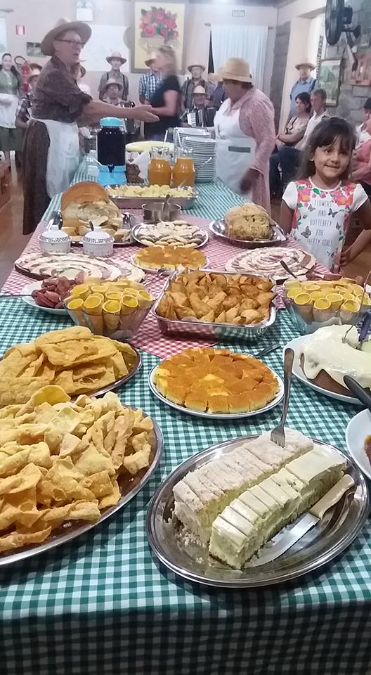 Além da apresentação teatral, das brincadeiras e muitas surpresas, são servidos pratos da gastronomia italiana, como polenta, fortaia (omelete), molhos, além de bolos, cucas e grostolis.