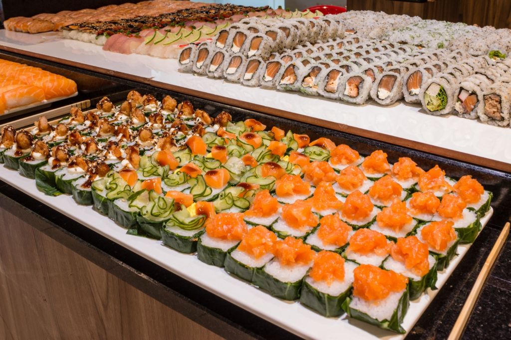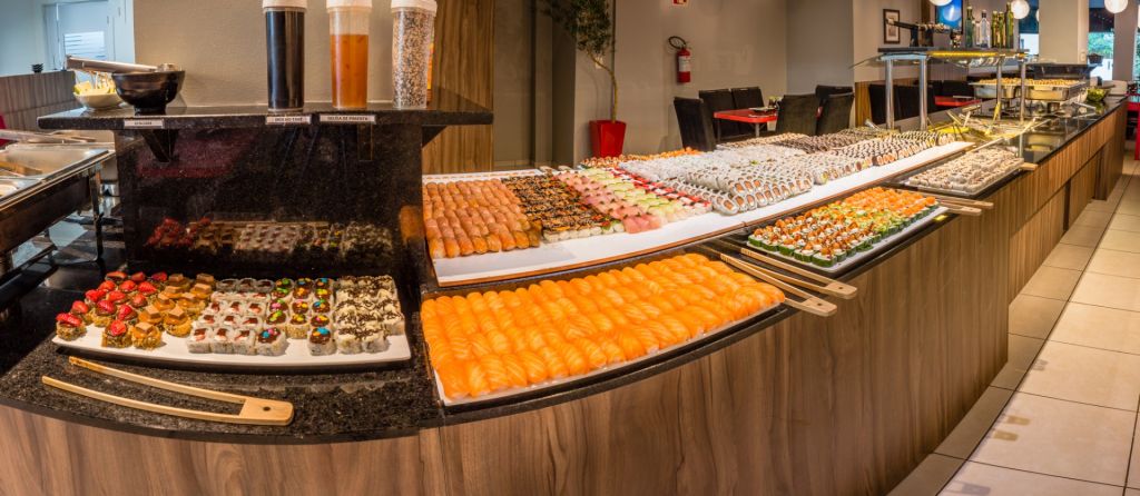 Buffet Livre à noite com 40 tipos de sushis, peixes e filés grelhados e o melhor da culinária asiática.