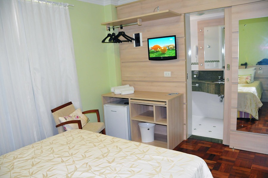 Possui quartos arejados, acesso Wi-Fi gratuito, TVs e frigobar.