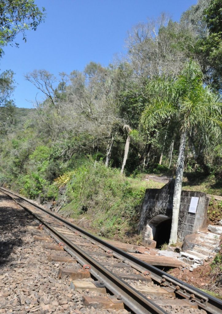 A linha férrea presente no roteiro ainda é ativa sendo possível fotografar a ponte do trem sobre o Túnel 57.
