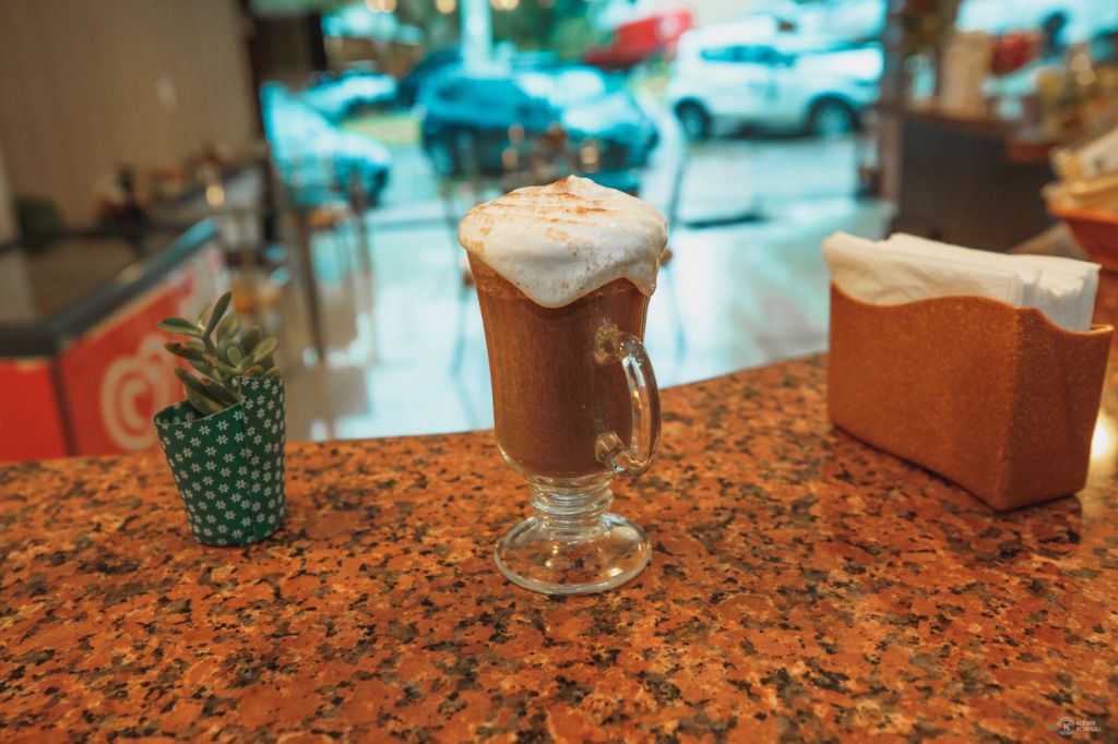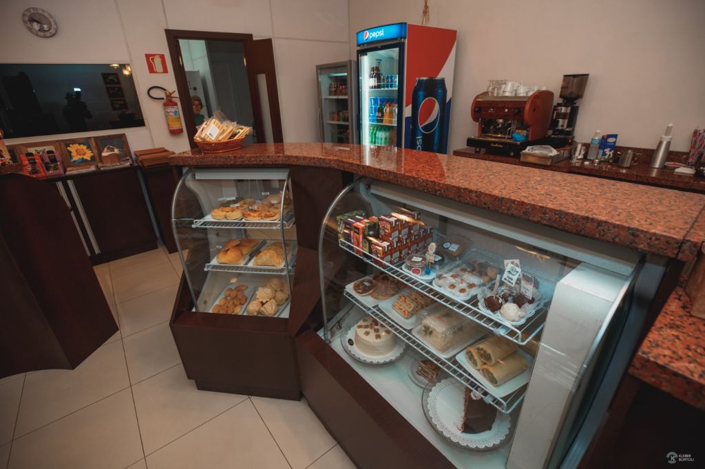 Serve cafés, Sanduíches, lanches, Torradas, Sucos, Sorvetes,Tortas e Sopas cremosas (também servidas no pão).